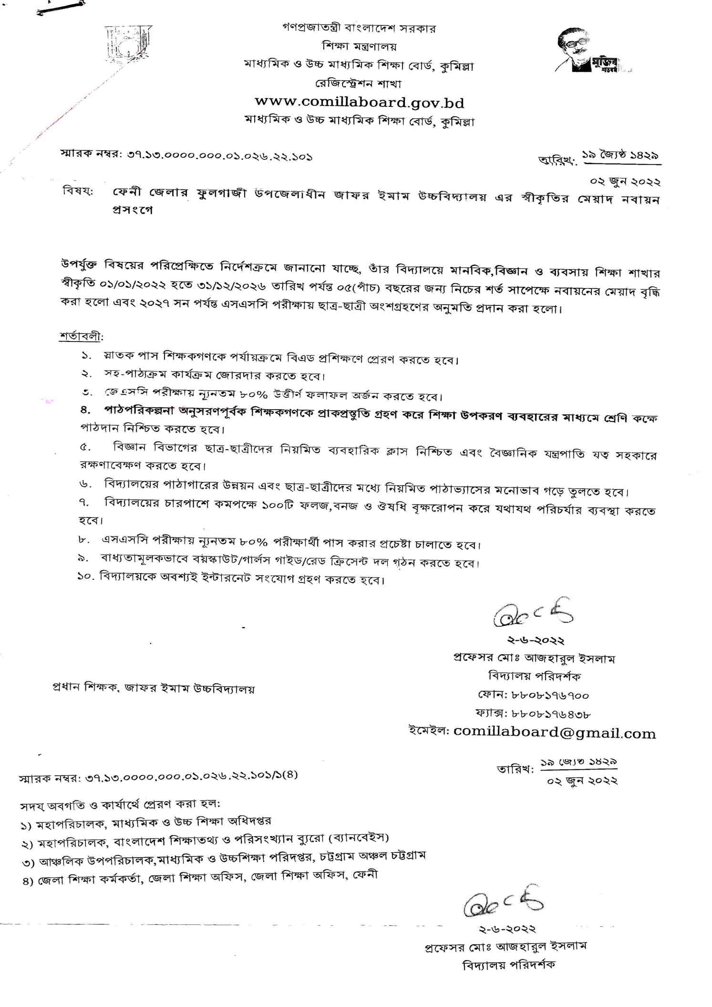 পাঠদানের অনুমুতি ও স্বীকৃতি